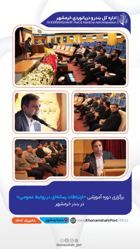 به گزارش اینجاخبر دوره آموزشی «ارتباطات رسانهای در روابط عمومی» به مدت دو روز در سالن آمفیتئاتر اداره کل بندر و دریانوردی خرمشهر برگزار شد.
