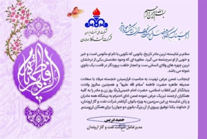 پیام تبریک مدیرعامل شرکت نفت و گاز اروندان به مناسبت ولادت حضرت فاطمه زهرا(س) و روز زن و مادر