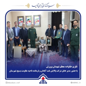 دیدار مدیرعامل شرکت پالایش نفت آبادان و فرمانده ناحیه مقاومت بسیج شهرستان با خانواده شهیدان پرورش