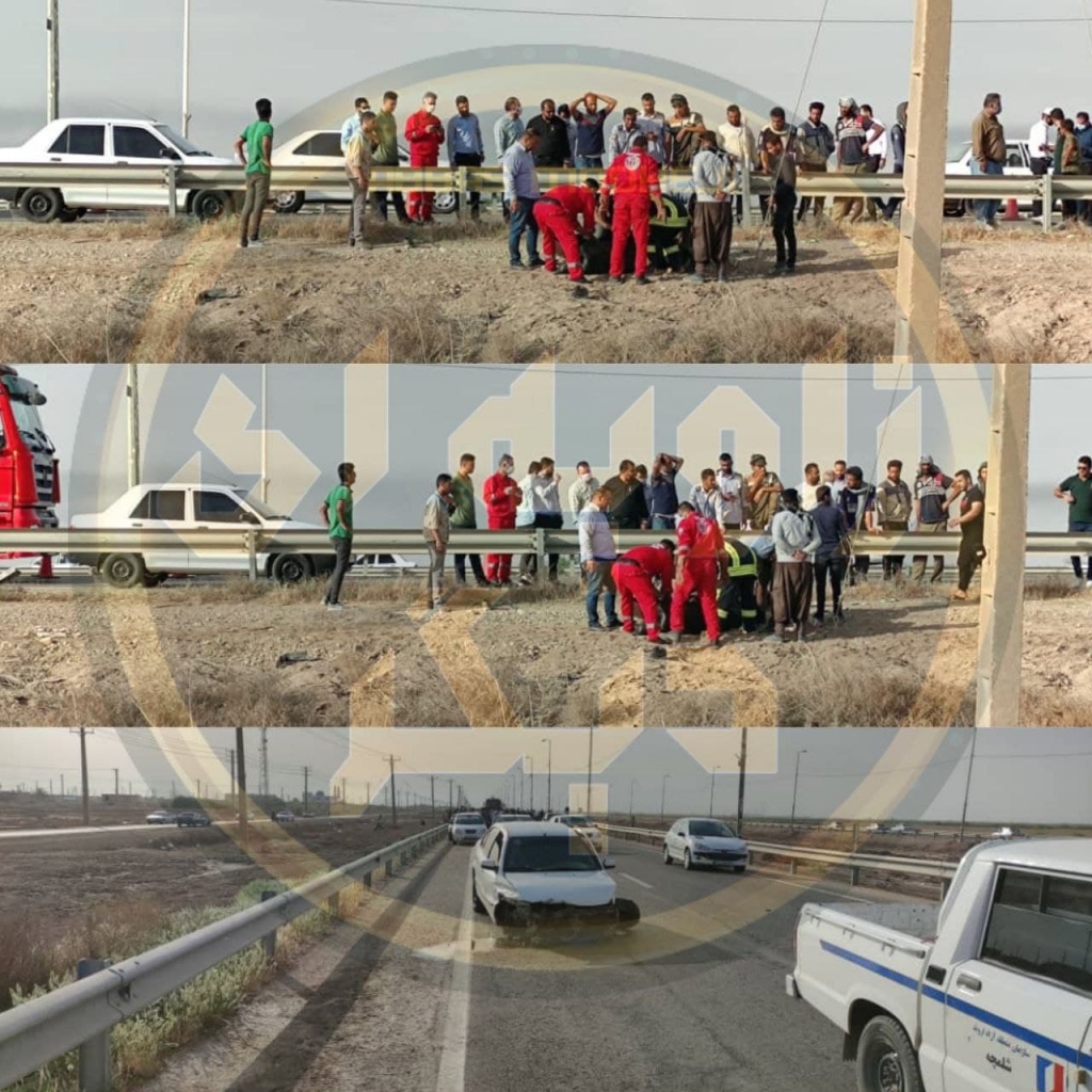 تصادف دوخودرو سمند و پژو در جاده شلمچه